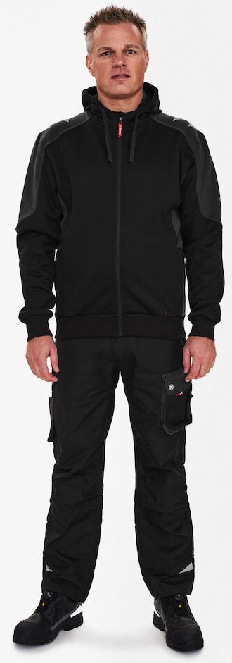 Funktionelle und angenehm zu tragende Sweatcardigan aus Jersey, innen mit geklebtem Fleece. Frontreißverschluss. Zwei große Einschubtaschen mit Reißverschluss. Strickbündchen an Bund und Ärmeln. Gute Sichtbarkeit durch reflektierenden Aufdruck auf den Schultern.
