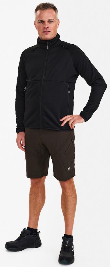 Bequemer Midlayer-Cardigan aus leichtem, dehnbarem Material. Weicher Fleece auf der Innenseite und Ärmel-/Seiteneinsätze aus schweißabsorbierendem Material sorgen für mehr Komfort. Reißverschluss vorne. Viele funktionelle Taschen – wobei die Außentaschen mit einem Reißverschluss geschlossen werden. Zwei Innentaschen. Mit elastischem Bund am Saum unten und an den Ärmelenden. Reflexpaspeln an den Schultern vorne und hinten für bessere Sichtbarkeit.