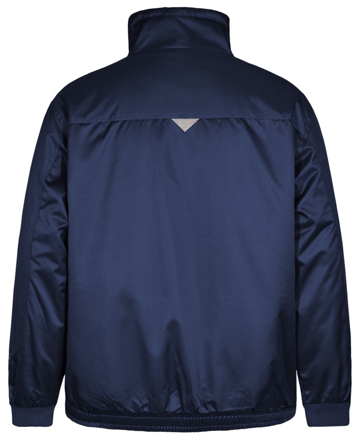 Pilotjacke mit doppelt verdecktem Kunststoffreißverschluss in passendem Farbdesign. Schultern und Ärmel verstärkt. Dunkel gefärbte Druckknöpfe. Brusttasche links mit seitlichem Eingriff mit Reißverschluss. Offene Brusttasche mit verschließbarer Handytasche rechts. Zwei Eingrifftaschen. Innentasche mit Reißverschluss. Strickbündchen an den Ärmeln. Elastischer Bund. Kragen mit Schnurstopper verstellbar. Faserpelz im Kragen und am Körper. Reißverschluss im hinteren, unteren Rückenbereich, um die Jacke für Transfers und Embleme leichter handhaben zu können. Wind- und wasserabweisendes Material.