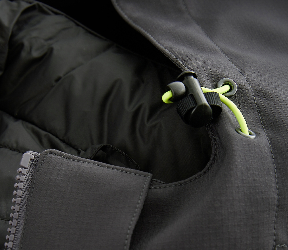 - Die wärmende, gesteppte Innenwattierung in Kombination mit der Fleece-Innenseite schützt den Körper vor Auskühlung