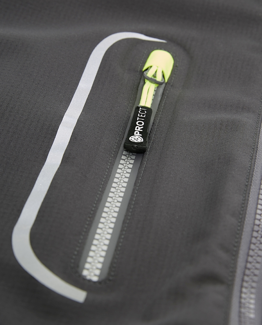 - Die eingearbeitete Funktionsmembran garantiert eine hohe Wasserdichtigkeit bei gleichzeitig guter Atmungsaktivität des Gewebes