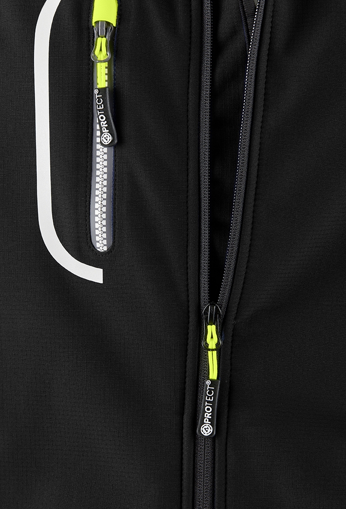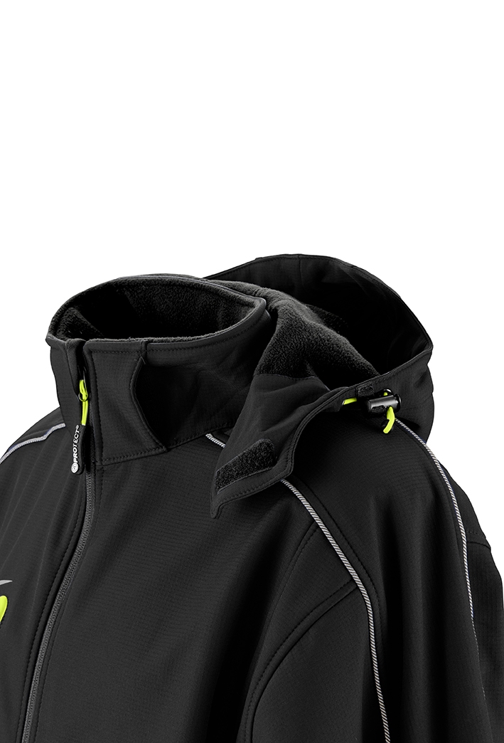 - Obermaterial: 100% Polyester (Ripstop-Softshell)
