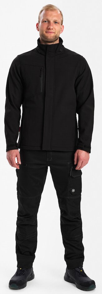 Praktische und klassische Softshelljacke, wind- und wasserabweisend, mit umweltfreundlicherer Beschichtung, die kein Fluor enthält. Die Softshelljacke ist eine gute Übergangsjacke im frühen Frühjahr oder Herbst, wenn es morgens und abends kalt sein kann. Durch das wind- und wasserabweisende Material bleibt der Wärmeverlust gering, z. B. auf dem Arbeitsweg oder der Arbeit im Freien. Die Softshelljacke hat einen weichen Fleece-Innenkragen als Windschutz, der sanft auf der Haut liegt. Die Jacke hat außerdem einen verdeckten Reißverschluss mit Klettverschluss vorne sowie viele funktionelle Taschen. Unten hält ein verstellbarer Kordelzug die Jacke winddicht geschlossen. Die Arbeitsjacke ist so entwickelt, dass sie viel Platz für das Firmenlogo bietet.