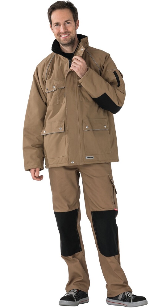 Wasserdicht, Nähte hinterklebt, Fleecekragen, Reflexbiesen an den Schultern und Taschenpatten, Armbeugen mit Cordura® abgesetzt, Kapuze im Kragen, aufgesetzte Handytasche rechts, 2 seitliche Einschubtaschen, 2 Brusttaschen mit Patte und Druckknöpfen zu verschließen, Ärmeltasche links, Innentasche mit Klettverschluss, Innenfutter gesteppt, verdeckter Frontreißverschluss, Strickbündchen an den Ärmeln und am Bund