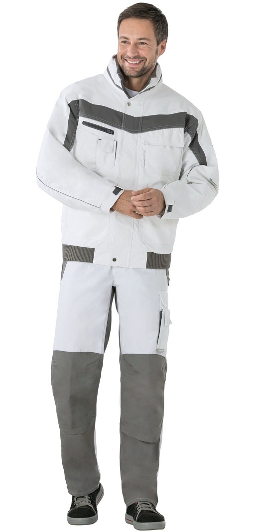 Atmungsaktiv, wasserdicht, Nähte hinterklebt, Fleecekragen, Reflexbiesen als Sicherheitsausstattung, Kapuze im Kragen, 1 Brusttasche links mit Patte und Klettverschluss, doppelte Brusttasche rechts, Handytasche auf der rechten Brust, 2 Stiftfächer, 2 seitliche Einschubtaschen, 2 aufgesetzte Seitentaschen, Ärmeltasche links, Dokumententasche unter der Frontpatte, Innenfutter gesteppt, verdeckter Frontreißverschluss, Strickbündchen am Bund, elastische Ärmelbündchen durch Klettband verstellbar.