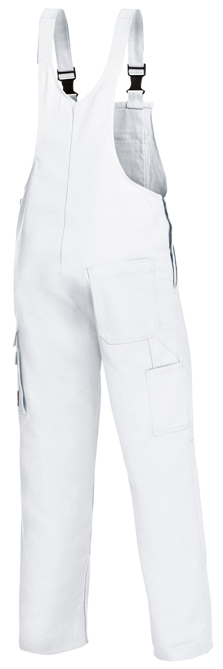 - Stoffträger mit Gummieinsatz, Kunststoff-Steckschnallen, doppelte Latztasche, davon 1 mit verdecktem Reißverschluss