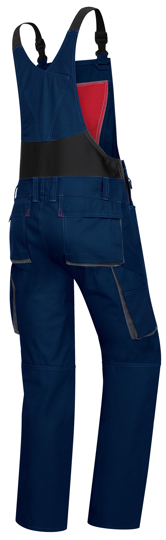 - Stretchträger mit Kunststoff-Steckschnallen, doppelte Latztasche mit Reißverschluss und Taschenklappe, 2 Stifttaschen, hochgezogener Rücken mit Stretcheinsatz für mehr Bewegungsfreiheit, regulierbare Bundweite