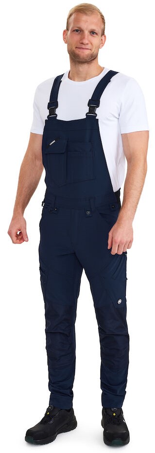 Funktioneller Latzhose mit moderner Passform und vielen praktischen Details. Optimale Passform u. a. mit ergonomisch geformtem Kniebereich. Der Stoff mit bequemem 4-Wege-Stretch bietet erstklassige Haltbarkeit und Atmungsaktivität. Das Gewebe hat gute feuchtigkeitsabsorbierende Eigenschaften, trocknet schnell und ist deshalb besonders komfortabel. Der Latzhose hat ein breites Rückenteil aus Stretchmaterial. Verstellbare Träger und Gummizug an den Seiten für eine bessere Passform. Knöpfe für leichtes und schnelles Befestigen von Holstertaschen. D-Ring für die Befestigung von z. B. Ausweisen. Der Latz hat eine verdeckte Reißverschlusstasche hinten und eine Handytasche. Zwei geräumige Schrägtaschen vorne. Zwei Gesäßtaschen. Zwei Schenkeltaschen mit Reißverschluss. Die linke Schenkeltasche hat eine extra Handytasche. Auf der rechten Seite hat die Schenkeltasche eine Zollstocktasche mit zusätzlichen Unterteilungen. Knieverstärkung/Knietasche aus CORDURA mit Klettverschluss unten und zwei Einstellmöglichkeiten für das Kniepolster. Die Hosenbeinabschlüsse sind hinten für besondere Strapazierfähigkeit verstärkt. Der Latzhose hat einen besonders breiten Saum unten, der ausgelassen werden kann, wenn zusätzliche Beinlänge erforderlich ist. Um den Overall zu verlängern, muss lediglich eine Naht aufgetrennt werden – und das Hosenbein ist trotzdem noch gesäumt.