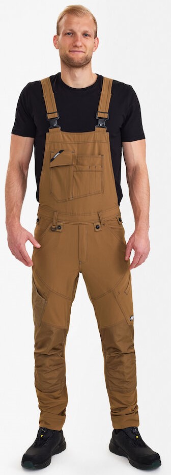 Funktioneller Latzhose mit moderner Passform und vielen praktischen Details. Optimale Passform u. a. mit ergonomisch geformtem Kniebereich. Der Stoff mit bequemem 4-Wege-Stretch bietet erstklassige Haltbarkeit und Atmungsaktivität. Das Gewebe hat gute feuchtigkeitsabsorbierende Eigenschaften, trocknet schnell und ist deshalb besonders komfortabel. Der Latzhose hat ein breites Rückenteil aus Stretchmaterial. Verstellbare Träger und Gummizug an den Seiten für eine bessere Passform. Knöpfe für leichtes und schnelles Befestigen von Holstertaschen. D-Ring für die Befestigung von z. B. Ausweisen. Der Latz hat eine verdeckte Reißverschlusstasche hinten und eine Handytasche. Zwei geräumige Schrägtaschen vorne. Zwei Gesäßtaschen. Zwei Schenkeltaschen mit Reißverschluss. Die linke Schenkeltasche hat eine extra Handytasche. Auf der rechten Seite hat die Schenkeltasche eine Zollstocktasche mit zusätzlichen Unterteilungen. Knieverstärkung/Knietasche aus CORDURA mit Klettverschluss unten und zwei Einstellmöglichkeiten für das Kniepolster. Die Hosenbeinabschlüsse sind hinten für besondere Strapazierfähigkeit verstärkt. Der Latzhose hat einen besonders breiten Saum unten, der ausgelassen werden kann, wenn zusätzliche Beinlänge erforderlich ist. Um den Overall zu verlängern, muss lediglich eine Naht aufgetrennt werden – und das Hosenbein ist trotzdem noch gesäumt.