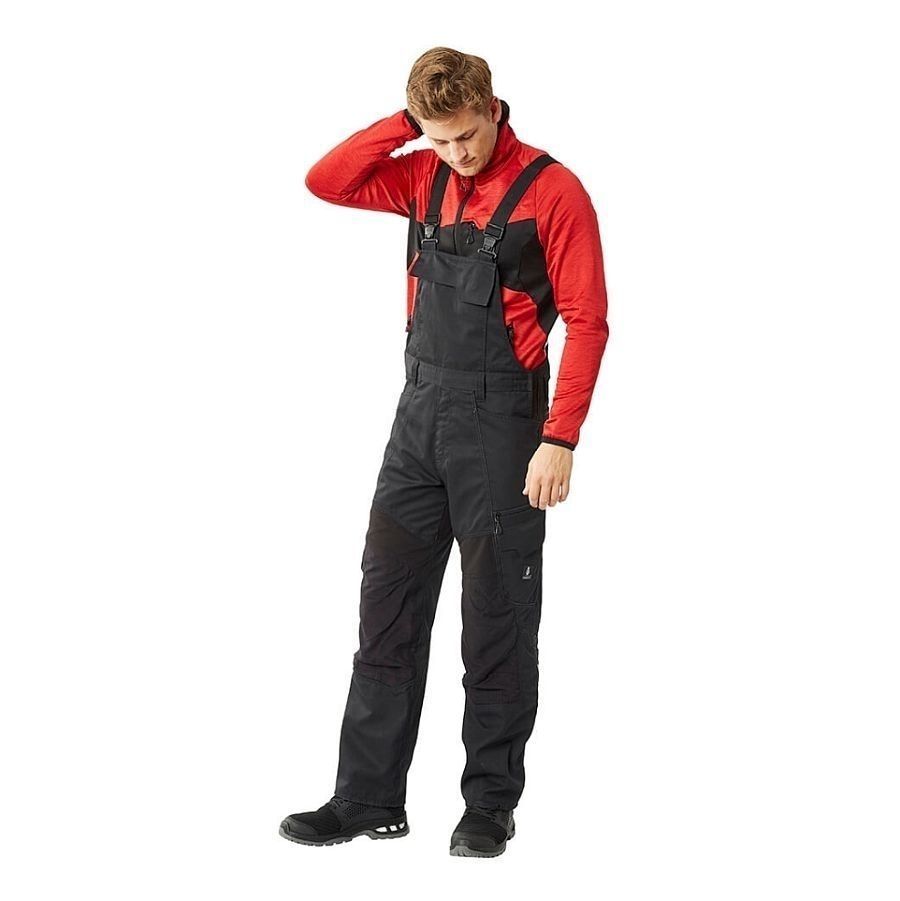 Gürtelschlaufen. Gesäßtaschen. Hosenbeine sind ergonomisch geformt. Teile des Produktes sind aus Stretchstoff. Vordertaschen. Hosenschlitz mit Reißverschluss. ID-Kartenhalter ist abnehmbar. Knietaschen aus super strapazierfähigem CORDURA® (1000 D). Kombination der leichten Stoffqualität 442 und ULTIMATE STRETCH Stoffqualität 511. Schenkeltasche mit Handyfach, Patte und verdecktem Druckknopf und integriertem ID-Kartenhalter. Bund ist regulierbar. Die Taschen sind im Design integriert. Einfache und individuelle Regulierung der Knietaschenhöhe. Mit Druck und Reflexen. Zertifiziert zusammen mit Kniepolstertyp SHORT oder LONG gemäß EN 14404. Schulterträger aus Stoff, verstellbar und mit kurzem, kräftigem Gummizug sowie Kunststoffschnallen. Latztasche mit Handytasche und Patte mit verdecktem Druckknopf. Zollstocktasche aus CORDURA® Gewebe mit extra Taschen. Zweifache Kappnähte an den Beinen und im Schritt. Zu diesem Modell empfehlen wir folgenden Knieschutz: 00418-100, 00718-100, 50451-916 oder 20118-915.