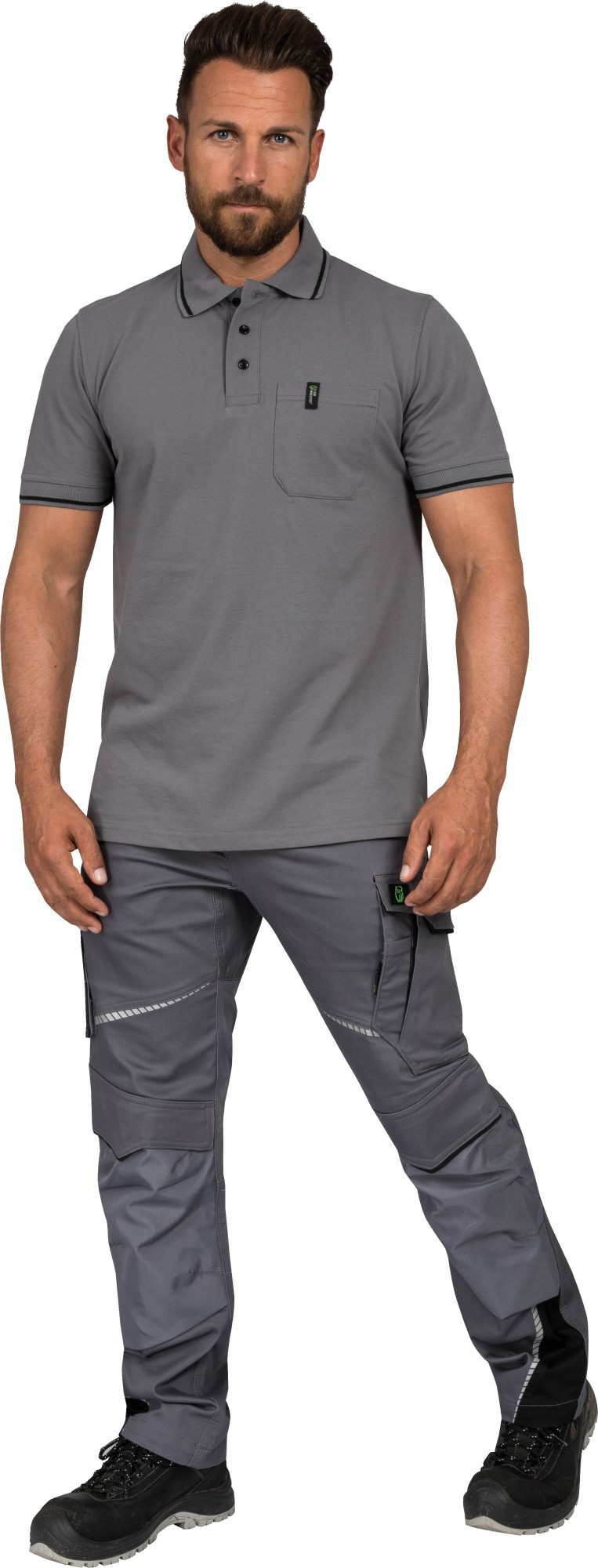 - Material: 50% Baumwolle, 50% Polyester-Piqué, 220 g/m²
