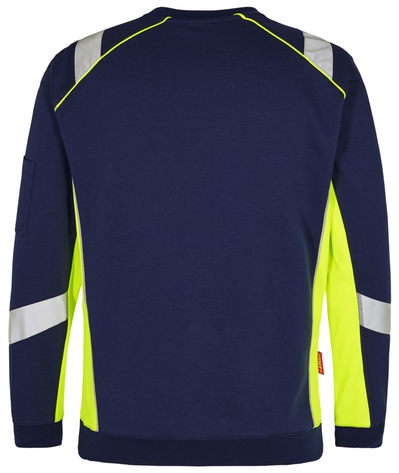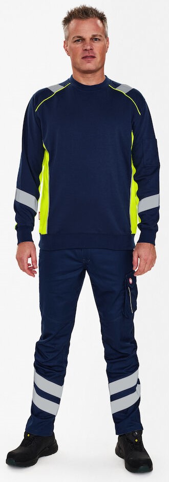 Bequemes und leichtes Sweatshirt mit Strickbündchen an Kragen, Bund und Ärmeln. Am linken Ärmel ist eine Tasche mit Einschub für z. B. Stifte. Reflexdetails für erhöhte Sichtbarkeit.