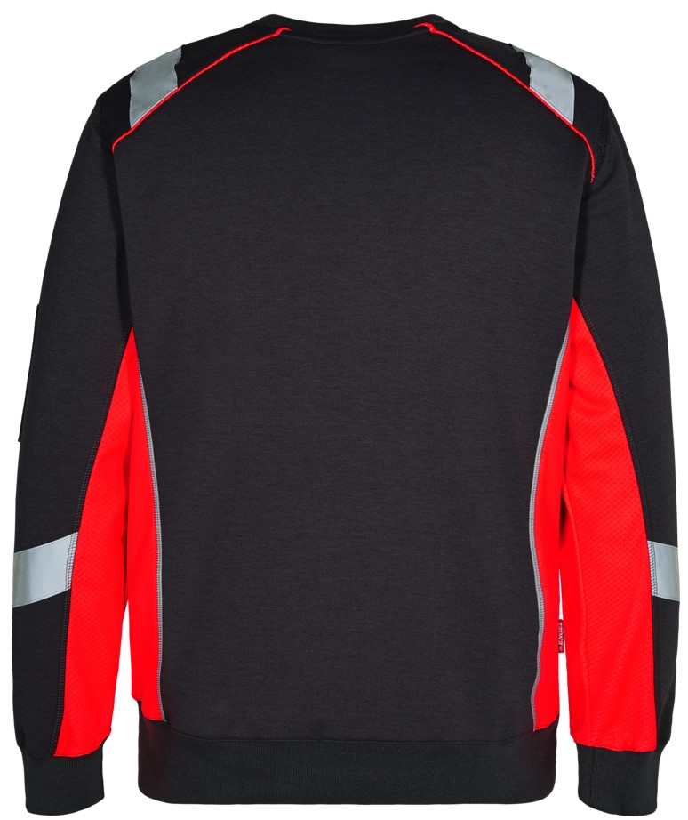 Bequemes und leichtes Sweatshirt mit Strickbündchen an Kragen, Bund und Ärmeln. Am linken Ärmel ist eine Tasche mit Einschub für z. B. Stifte. Reflexdetails für erhöhte Sichtbarkeit.
