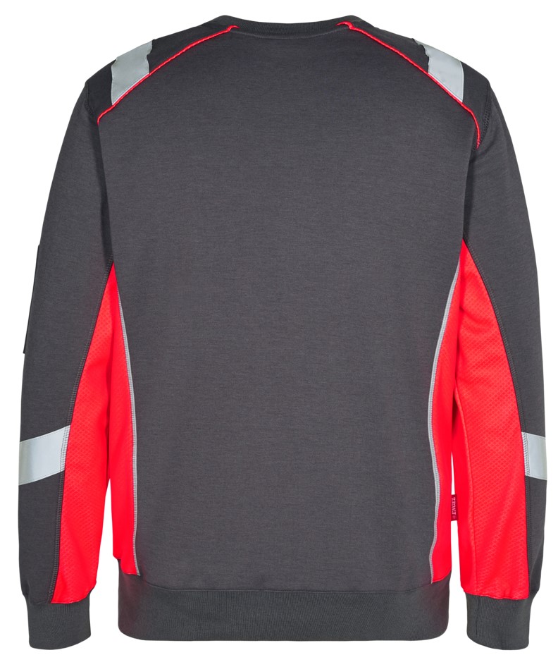 Bequemes und leichtes Sweatshirt mit Strickbündchen an Kragen, Bund und Ärmeln. Am linken Ärmel ist eine Tasche mit Einschub für z. B. Stifte. Reflexdetails für erhöhte Sichtbarkeit.