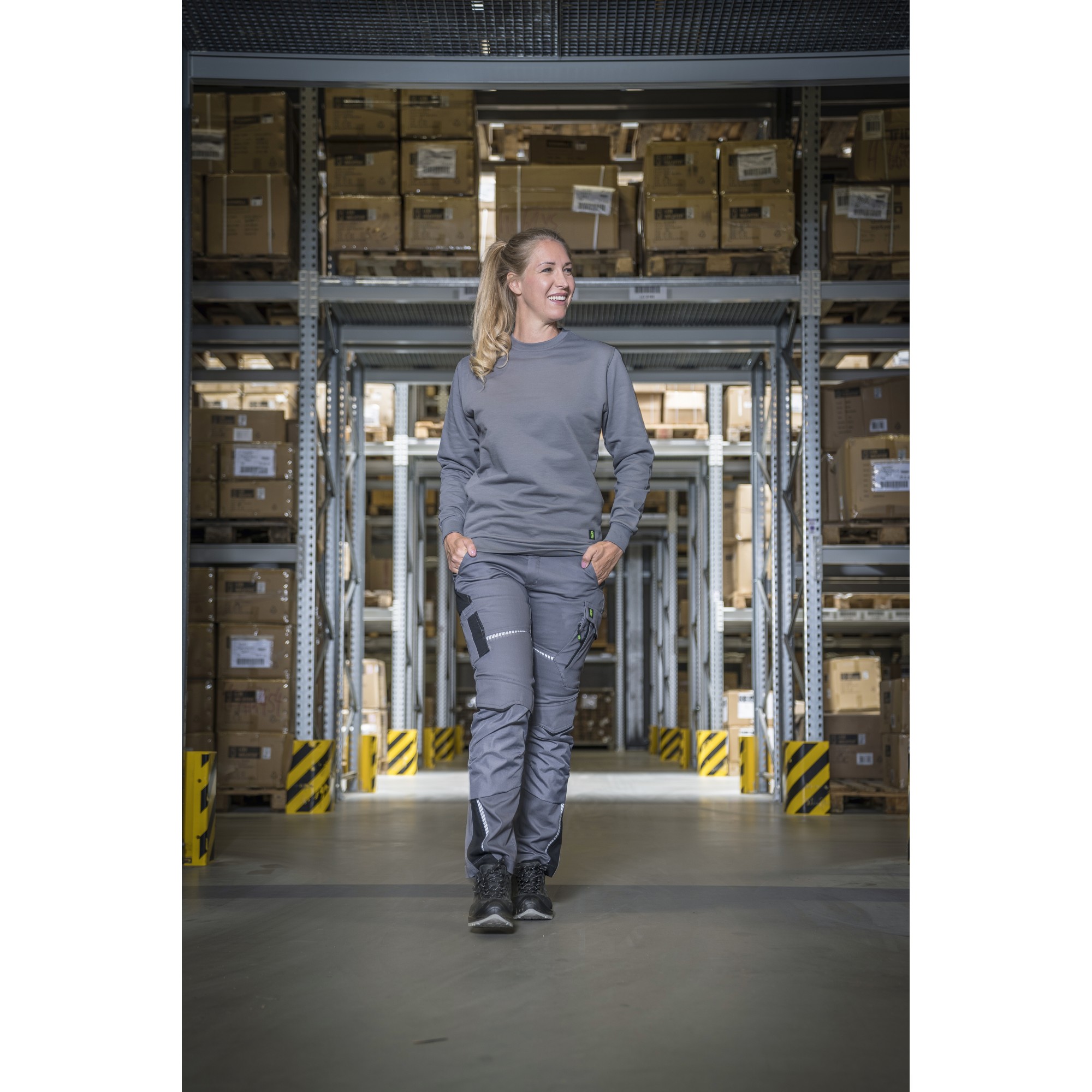 - 6 cm breite Rippbündchen am Saum und den Ärmelabschlüssen