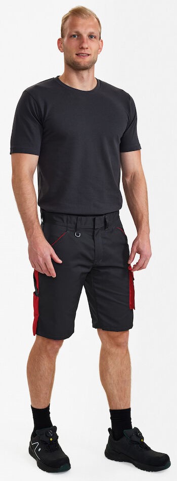 Funktionelle Arbeitsshorts mit vielen Details. Optimale Passform, mit Panel an der Innennaht im Schritt für mehr Bequemlichkeit. Zwei geräumige, schräg sitzende Einschubtaschen vorne. Schlaufe mit D-Ring (vorne) zur Befestigung einer ID-Karte. Zwei geräumige Gesäßtaschen, die rechte mit Patte und Klettverschluss. Sehr geräumige Schenkeltasche mit Reißverschlusstasche, z. B. für das Handy, sowie zusätzliche kleine Tasche. Zollstocktasche mit zusätzlichen Fächern. Die Zollstocktasche hat einen freihängenden Boden für mehr Bewegungsfreiheit. Für Industriewäsche geeignet.