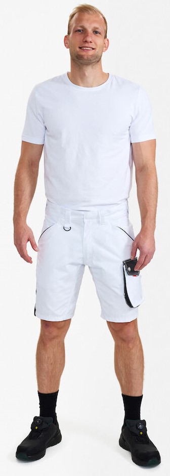 Funktionelle Shorts mit vielen Details. Optimale Passform, mit Panel an der Innennaht im Schritt für mehr Bequemlichkeit. Zwei geräumige, schräg sitzende Einschubtaschen vorne. Schlaufe mit D-Ring (vorne) zur Befestigung einer ID-Karte. Zwei geräumige Gesäßtaschen mit Patte und Klettverschluss. Schenkeltasche mit Reißverschlusstasche fürs Handy, zusätzliche kleine Tasche. Sie ist geräumig und sorgt dank des freihängenden Bodens für mehr Bewegungsfreiheit. Unten verstärkte Zollstocktasche mit zusätzlichen Fächern. Auch die Zollstocktasche hat einen freihängenden Boden. Für Industriewäsche geeignet.
