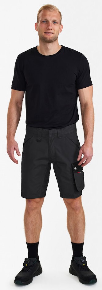 Funktionelle Shorts mit vielen Details. Optimale Passform, mit Panel an der Innennaht im Schritt für mehr Bequemlichkeit. Zwei geräumige, schräg sitzende Einschubtaschen vorne. Schlaufe mit D-Ring (vorne) zur Befestigung einer ID-Karte. Zwei geräumige Gesäßtaschen mit Patte und Klettverschluss. Schenkeltasche mit Reißverschlusstasche fürs Handy, zusätzliche kleine Tasche. Sie ist geräumig und sorgt dank des freihängenden Bodens für mehr Bewegungsfreiheit. Unten verstärkte Zollstocktasche mit zusätzlichen Fächern. Auch die Zollstocktasche hat einen freihängenden Boden. Für Industriewäsche geeignet.