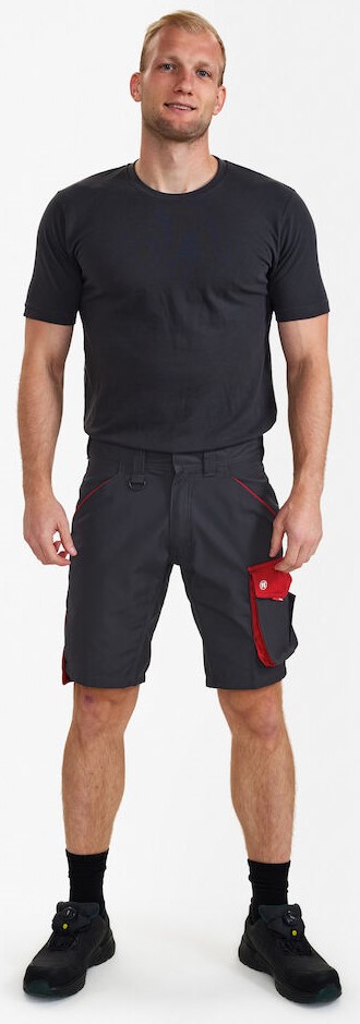 Funktionelle Shorts mit vielen Details. Optimale Passform, mit Panel an der Innennaht im Schritt für mehr Bequemlichkeit. Zwei geräumige, schräg sitzende Einschubtaschen vorne. Schlaufe mit D-Ring (vorne) zur Befestigung einer ID-Karte. Zwei geräumige Gesäßtaschen mit Patte und Klettverschluss. Schenkeltasche mit Reißverschlusstasche fürs Handy, zusätzliche kleine Tasche. Sie ist geräumig und sorgt dank des freihängenden Bodens für mehr Bewegungsfreiheit. Unten verstärkte Zollstocktasche mit zusätzlichen Fächern. Auch die Zollstocktasche hat einen freihängenden Boden. Für Industriewäsche geeignet.