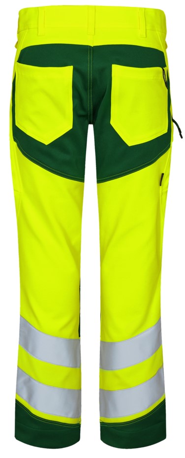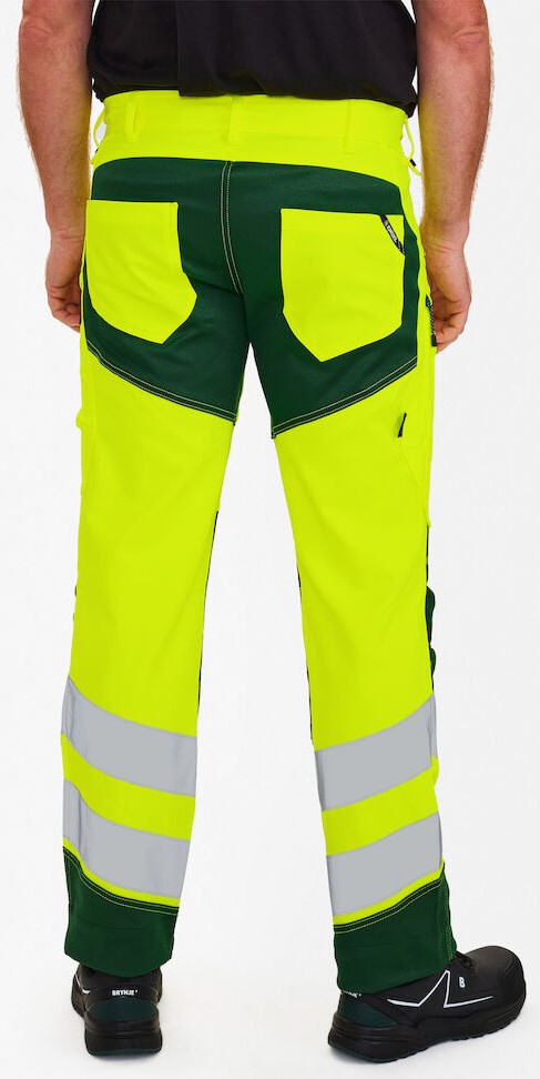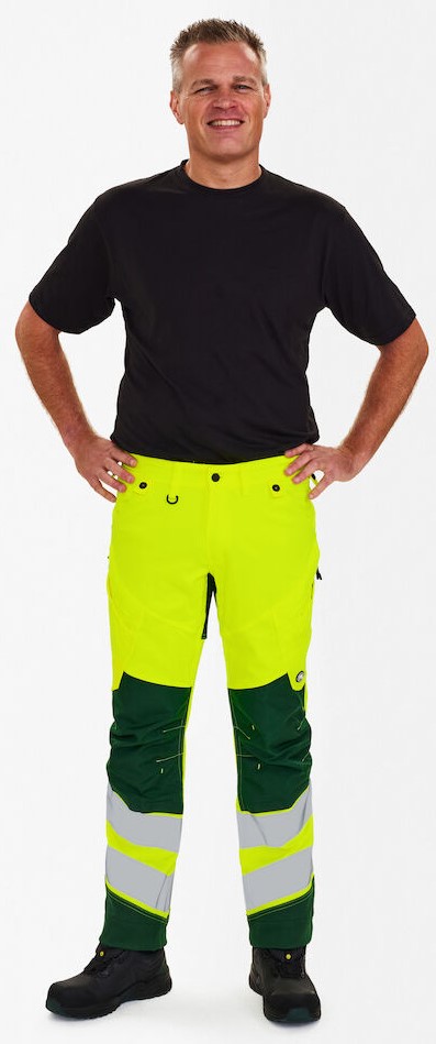 Dehnbare, funktionelle und fluoreszierende Hose im modernen Design. Optimale Passform mit u. a. ergonomisch geformtem Kniebereich. Der dehnbare Stoff sorgt für optimale Bewegungsfreiheit und Komfort. D-Ring vorne für die Befestigung von z. B. Ausweisen. Zwei geräumige Schrägtaschen vorne. Zwei Gesäßtaschen. Zwei Schenkeltaschen mit Reißverschluss. Die linke Schenkeltasche hat eine zusätzliche Handytasche. Die rechte Schenkeltasche hat eine aufgesetzte verstärkte Zollstocktasche mit zusätzlichen Unterteilungen. Knieverstärkung/Knietasche mit Klettverschluss unten und besteht aus CORDURA®-Material. Reflexstreifen am Unterschenkel. Breiter Saum unten, der ausgelassen werden kann, wenn zusätzliche Beinlänge erforderlich ist. Um die Hose zu verlängern, muss lediglich eine Naht aufgetrennt werden. Das Hosenbein ist trotzdem noch gesäumt. Bekleidungsklasse 2. Nach 50 mal Waschen getestet.