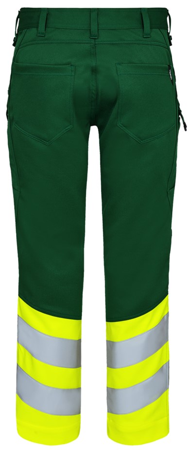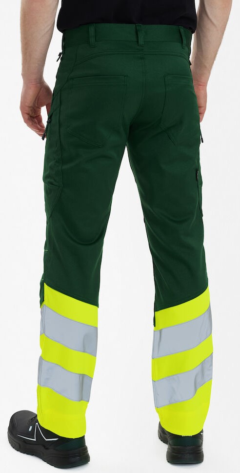Dehnbare, funktionelle und fluoreszierende Hose im modernen Design. Optimale Passform mit u. a. ergonomisch geformtem Kniebereich. Der dehnbare Stoff sorgt für optimale Bewegungsfreiheit und Komfort. D-Ring vorne für die Befestigung von z. B. Ausweisen. Zwei geräumige Schrägtaschen vorne. Zwei Gesäßtaschen. Zwei Schenkeltaschen mit Reißverschluss. Die linke Schenkeltasche hat eine zusätzliche Handytasche. Die rechte Schenkeltasche hat eine aufgesetzte Zollstocktasche mit zusätzlichen Unterteilungen sowie eine Messertasche, beide Taschen sind verstärkt. Knieverstärkung/Knietasche mit Klettverschluss unten und besteht aus CORDURA®-Material. Reflexstreifen am Unterschenkel. Breiter Saum unten, der ausgelassen werden kann, wenn zusätzliche Beinlänge erforderlich ist. Um die Hose zu verlängern, muss lediglich eine Naht aufgetrennt werden. Das Hosenbein ist trotzdem noch gesäumt. Bekleidungsklasse 1. Nach 50 mal Waschen getestet.
