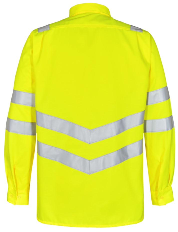 Safety Hemd mit perforierten Reflexstreifen über Schultern und um Ärmel und Torso. Zwei Brusttaschen, beide mit Einschubtasche für Bleistifte. Bekleidungsklasse 3.