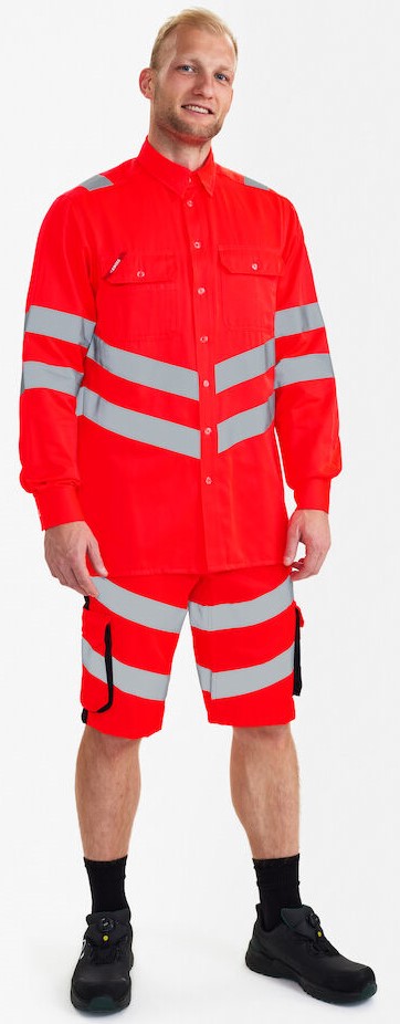 Safety Hemd mit perforierten Reflexstreifen über Schultern und um Ärmel und Torso. Zwei Brusttaschen, beide mit Einschubtasche für Bleistifte. Bekleidungsklasse 3.
