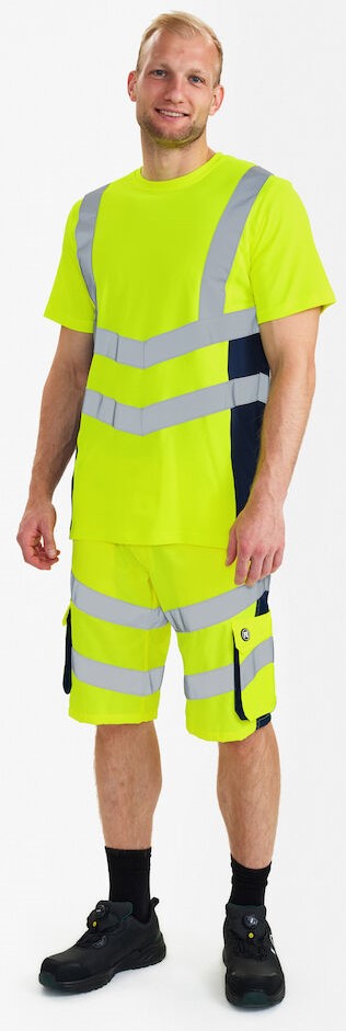 Bequemes und schickes T-Shirt mit Warnschutzfunktion im modernen Design. Das T-Shirt besteht aus bequemem Pikee-Stoff mit Baumwolle auf der Innenseite für mehr Komfort. Rippstrick am Halsausschnitt. Reflexstreifen über die Schulterpartie hinweg sowie rund um die Taille. Bekleidungsklasse 2. Nach 25 mal Waschen getestet.