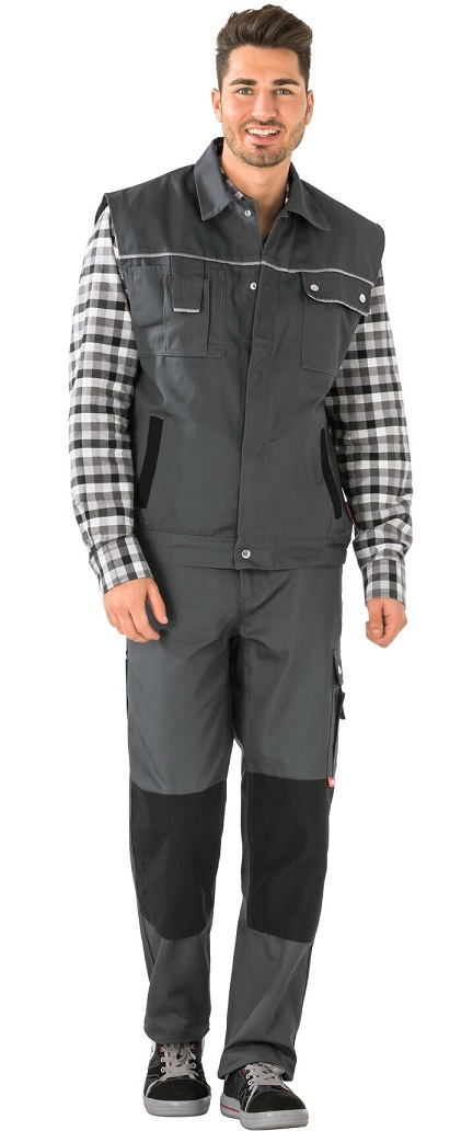 2 eingesetzte Beuteltaschen aus Cordura®, Reflexbiesen am Schultersattel und an den Taschenpatten, 2 Brusttaschen, links mit Patte und Druckknöpfen, rechts mit zusätzlich aufgesetzter Handytasche, Gummizug im Bund, verdeckte Druckknopfleiste als Frontverschluss, Aufhänger im Kragen.