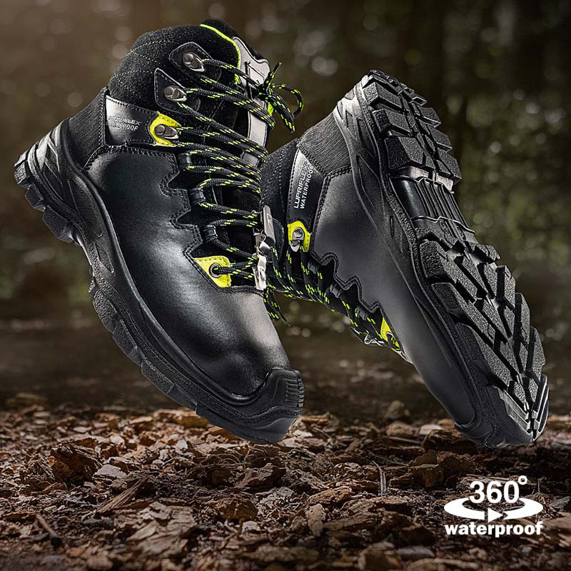 - Wasserdichter mittelhoher Sicherheitsschuh mit Schutz gegen Kettensägenschnitte