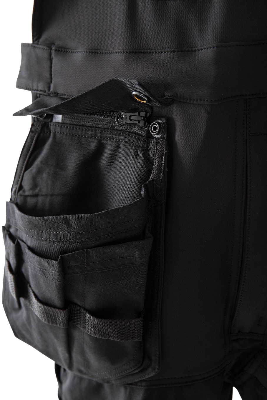 - 2 CORDURA®-verstärkte abnehmbare, lose hängende Außentaschen - mit 3 kleineren Taschen und Werkzeugschlaufen - Mit Platz für Werkzeuge für Rechts- und Linkshänder