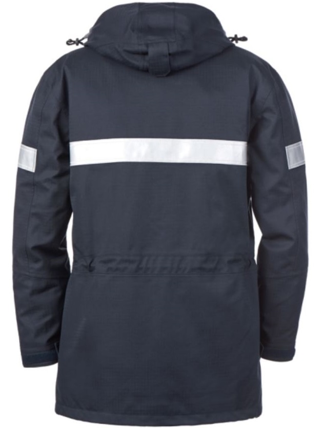 • schwer entflammbare 3M Scotchlite™ 8935-Reflexstreifen auf Front und Rücken, sowie Ärmel