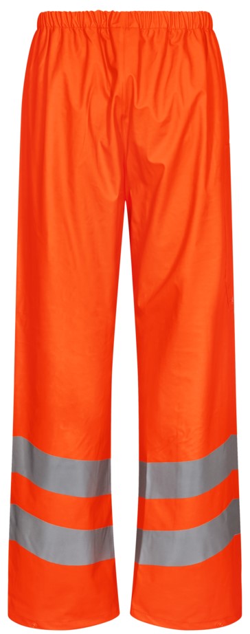 Funktionelle Regenhose mit verschweißten Nähten. Verstellbarer Gummizug in der Taille. Funktionelle Zollstocktasche. Verstellbare Beinweite an den Hosenbeinabschlüssen. Bekleidungsklasse 2. Getestet nach 5 Wäschen