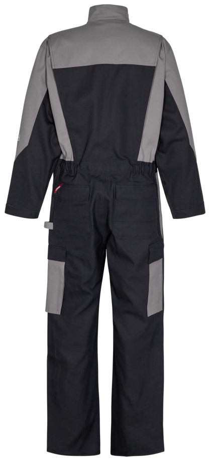 Overall mit doppelter Knopfleiste und verdeckten Druckknöpfen vorne. Brusttaschen mit Patte und Klettverschluss, die Rechte mit Handytasche, zwei Innentaschen mit Reißverschluss, Manschetten mit Klettverschluss. Rückenfalten sorgen für bessere Bewegungsfreiheit, zwei mit Patte verdeckte Einschubtaschen, Knieverstärkung/Knietaschen mit Klettverschluss unten, verstärkte Gesäßtaschen mit Patte, Hammerschlaufe, Zollstocktasche. Funktionelle Details an Taschen und Bund verhindern das Festsetzen der Funken. Antistatisch, flammhemmend und schützend vor Aerosolen, Spray und leichten Spritzern von Chemikalien.