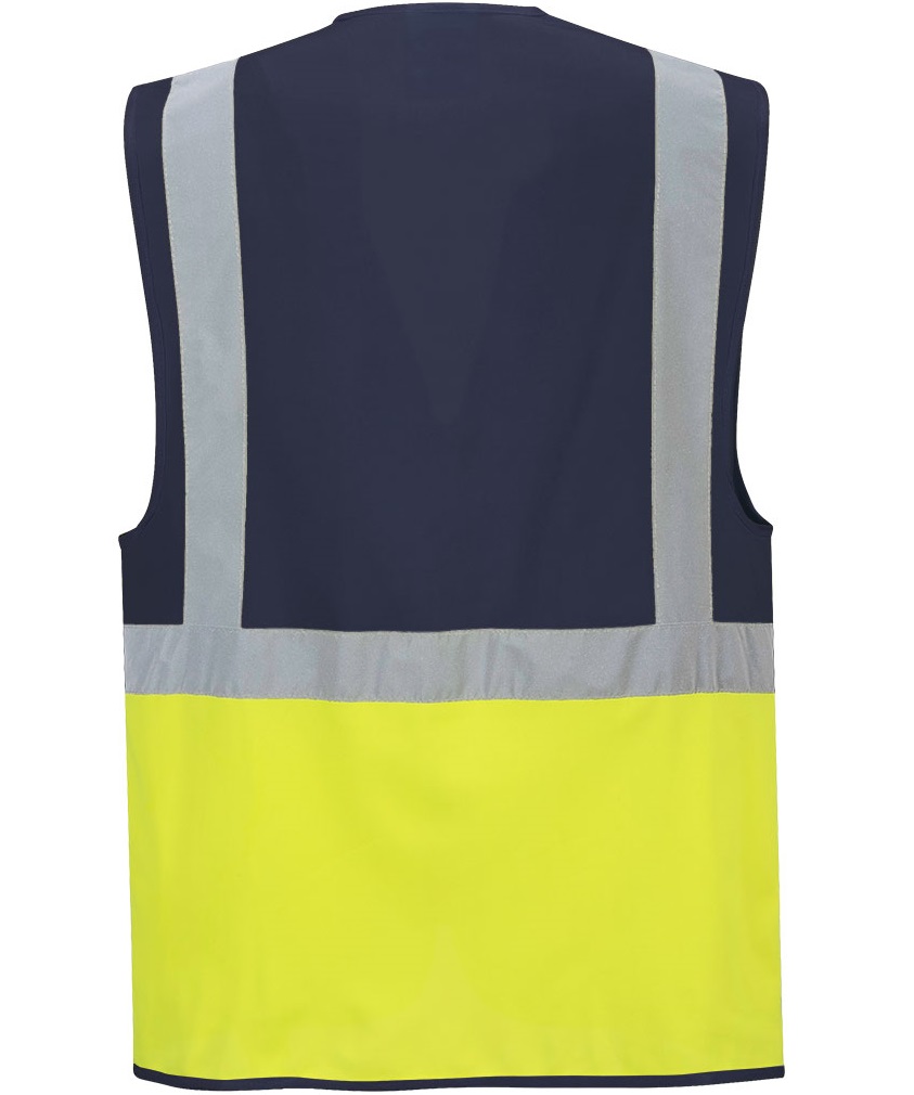 Zweifarbige Warnschutzweste in verschiedenen Farbkombinationen mit zahlreichen Eigenschaften und Farben. Ideal für die einheitliche Ausstattung.