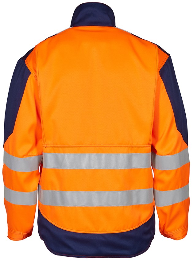 Jacke mit Knopfleiste und Frontreißverschluss. Verlängerte Rückenpartie. Verdeckte Napoleontasche auf der linken Brust. Zwei Einschubtaschen mit Reißverschluss. Zwei Innentaschen. Verstellbare Ärmelbündchen mit Klettverschluss. Rückenfalte für mehr Komfort. Flammhemmende LOXY® Reflexstreifen. Funktionelle Details an den Taschen und der Bewegungsfalte verhindern, dass Funken hängen bleiben. Antistatisch und flammhemmend. Bekleidungsklasse 2.