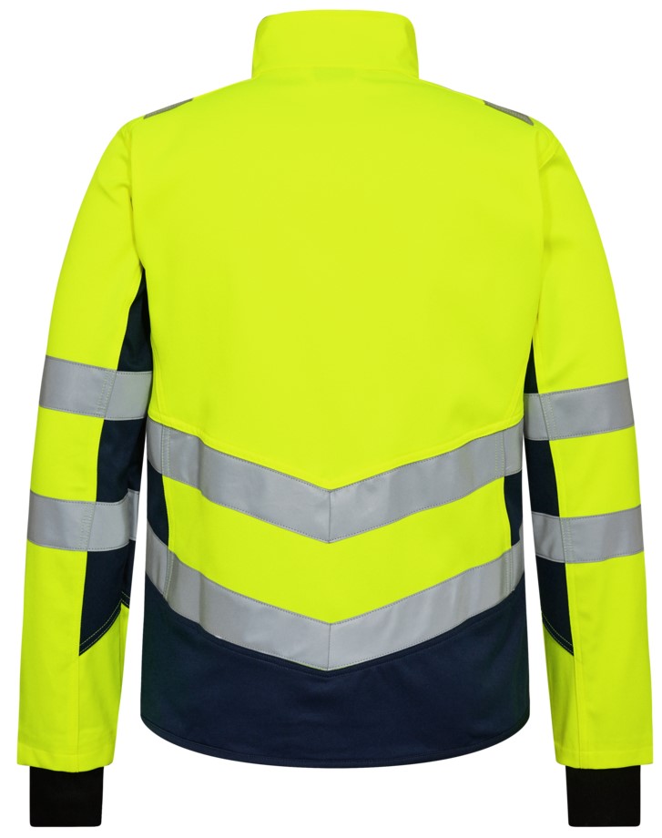 Dehnbare und funktionelle fluoreszierende Arbeitsjacke im modernen Design. Die Jacke hat einen hohen Kragen und ist hinten länger geschnitten. Der dehnbare Stoff bietet viel Komfort und Bewegungsfreiheit. Reißverschluss vorne. Zwei geräumige Seitentaschen sowie eine Brusttasche, jeweils mit Reißverschluss. Zusätzlicher Windfang aus Rippstrick an den Ärmeln. Der Windfang mit Daumenloch kann zum Schutz vor Kälte über die Hand gezogen werden. Reflexstreifen über die Schulterpartie hinweg sowie rund um Ärmel und Taille. Bekleidungsklasse 2. Nach 50 mal Waschen getestet.