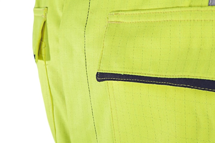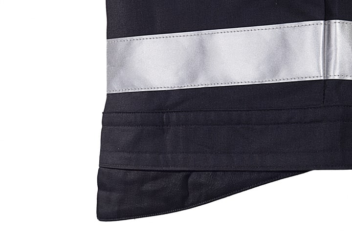 • doppelt aufgenähte (2x2) flammenhemmende Reflexstreifen (50mm)