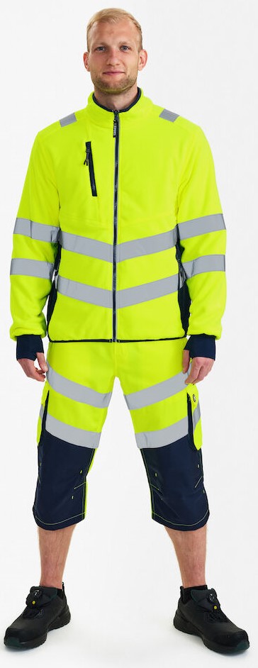 Funktionelle, fluoreszierende Fleecejacke im modernen, attraktiven Design mit Stretchfutter. Die Jacke ist am Kragen mit Fleece gefüttert, und daher weich und angenehm auf der Haut. Reflektierender Reißverschluss vorne. Die Jacke kann mit den Modellen 1146-930 kombiniert werden, die einen Reißverschluss zum Einzippen haben. Zwei geräumige Seitentaschen sowie eine Brusttasche, jeweils mit Reißverschluss. Zwei große Innentaschen mit Klettverschluss. Die Jacke hat einen elastischen Bund unten. Ärmel mit elastischem Windfang mit Daumenöffnung. Ärmel mit elastischem Windfang mit Daumenöffnung. Zusätzlicher Windfang aus elastischem Material in den Ärmeln. Der Windfang mit Daumenöffnung kann zum Schutz vor Kälte über die Hand gezogen werden. Reflexstreifen über die Schulterpartie hinweg sowie rund um Ärmel und Taille. Bekleidungsklasse 2. Nach 25 mal Waschen getestet.