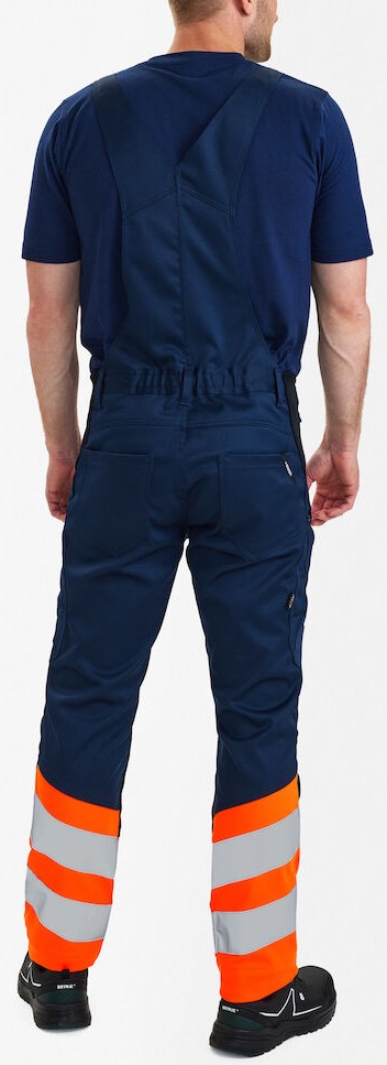 Dehnbare und funktionelle fluoreszierende Latzhose im modernen Design. Der dehnbare Stoff sorgt für optimale Bewegungsfreiheit und Komfort. Optimale Passform mit u. a. ergonomisch geformtem Kniebereich. Hoch geschnittenes Rückenteil und Rippstrickeinsätze an den Seiten sorgen für optimale Passform und Tragekomfort. Verstellbare Träger. Latztasche mit Reißverschluss. Latzinnentasche mit Reißverschluss. Zwei Gesäßtaschen. Zwei Schenkeltaschen mit Reißverschluss. Die linke Schenkeltasche hat eine zusätzliche Handytasche. Die rechte Schenkeltasche hat eine aufgesetzte Zollstocktasche mit zusätzlichen Unterteilungen. D-Ring an der Latztasche für die Befestigung von z. B. Ausweisen. Knieverstärkung/Knietasche mit Klettverschluss unten und besteht aus CORDURA®-Material. Breiter Saum unten, der ausgelassen werden kann, wenn zusätzliche Beinlänge erforderlich ist. Um die Hose zu verlängern, muss lediglich eine Naht aufgetrennt werden. Das Hosenbein ist trotzdem noch gesäumt. Bekleidungsklasse 2. Nach 50 mal Waschen getestet
