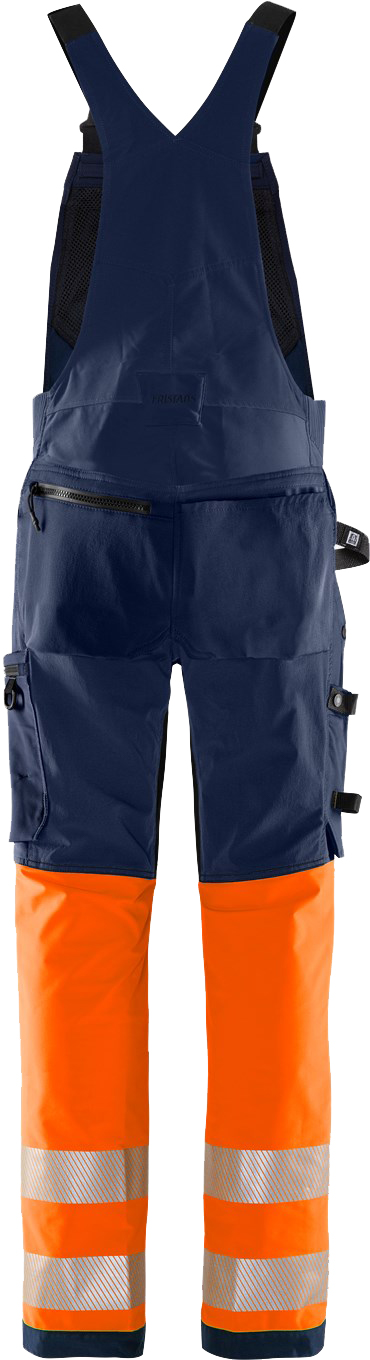 Nachhaltige, hochsichtbare Stretch-Latzhose aus 4-Wege-Stretchmaterial mit Stretcheinsätzen am Bund. Hergestellt aus biobasierten und recycelten Materialien und an exponierten Stellen verstärkt. Mit EPD (Environmental Product Declaration). Konzept: Stiby
