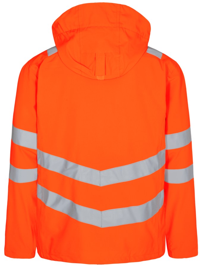 Fluoreszierende, atmungsaktive sowie wasser- und winddichte Shelljacke mit verschweißten Nähten und hohem Kragen im modernen Design. Doppelte Knopfleiste mit Reißverschluss sowie Klettverschluss vorne. Die Jacke kann mit den Modellen 1192-236, 1159-158 und 5159-158 kombiniert werden, die alle einen Reißverschluss zum Einzippen haben. Zwei geräumige Seitentaschen und Brusttasche mit Reißverschluss sowie große Innentaschen mit Klettverschluss. Abnehmbare, verstellbare Kapuze mit ausreichend Platz für den Arbeitshelm. Verstellbare Manschetten. Reißverschluss im Futter, für Aufdruck/Stickerei eignet. Reflexstreifen über die Schulterpartie hinweg sowie rund um Ärmel und Körper. Bekleidungsklasse 3. Nach 50 mal Waschen getestet.