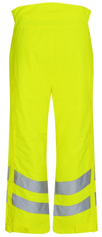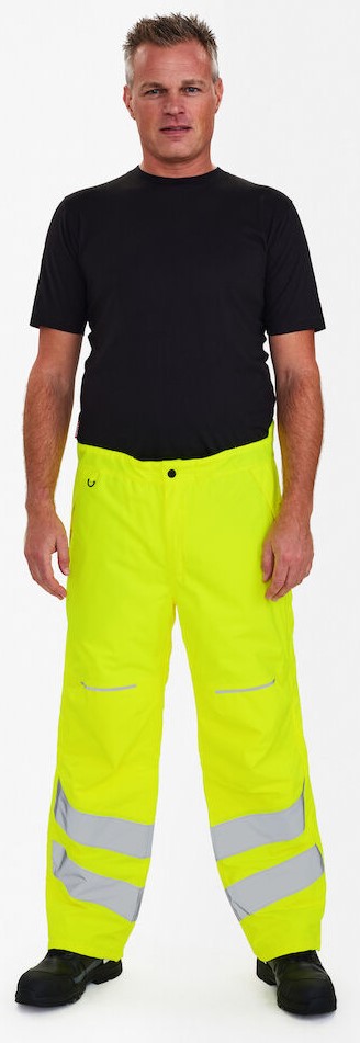 Fluoreszierende atmungsaktive, wasser- und winddichte Winterhose mit verschweißten Nähten. Zwei Fronttaschen mit Klettverschluss. D-Ring vorne für die Befestigung von z. B. Ausweisen. Extra hoher Lendenbereich und verstellbarer Gummizug in der Taille für maximalen Komfort. Verdeckter Zwei-Wege-Reißverschluss an den Beinen, der den Zugang zur Innenbekleidung ermöglicht sowie Schneefang/Windfang an den Beinen. Knieverstärkung. Reflexstreifen am Unterschenkel. Bekleidungsklasse 3. Nach 50 mal Waschen getestet.