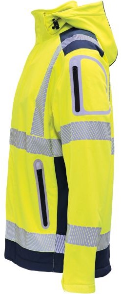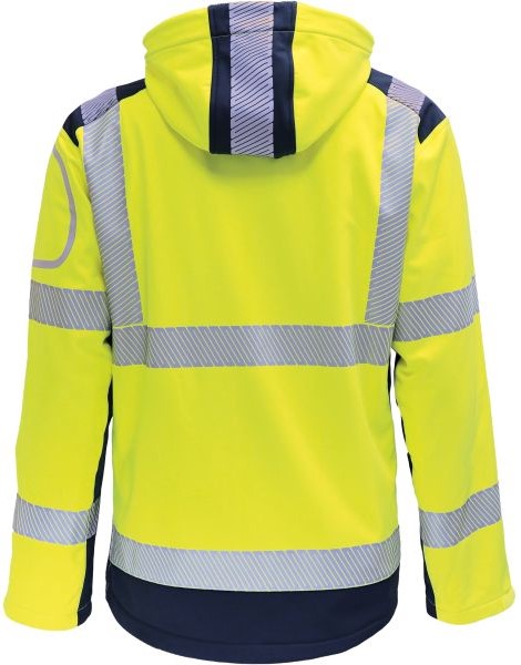 Produktinformationen "Vizwell VW177TY Warnschutz-Softshelljacke mit Kapuze leuchtgelb-marine"