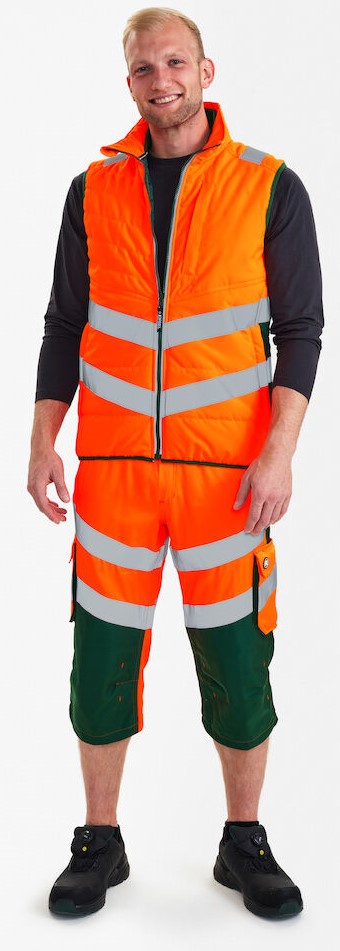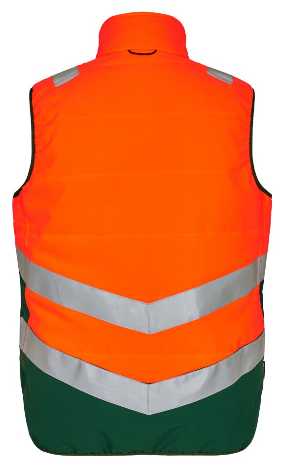 Warme, fluoreszierende Weste im modernen Design mit wind- und wasserabweisenden Eigenschaften. Die Weste kann mit den Modellen 1146-930 kombiniert werden, die einen Reißverschluss zum Einzippen haben. Reflektierender Reißverschluss vorne. Zwei Seitentaschen sowie Brusttasche mit Reißverschluss. Die Weste hat unten und am Armloch ein elastisches Bündchen. Reflexstreifen über die Schulterpartie hinweg sowie rund um die Taille. Bekleidungsklasse 1. Nach 50 mal Waschen getestet.