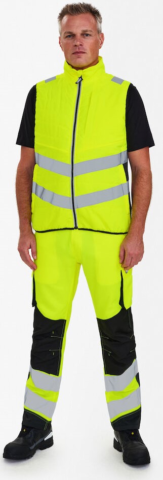 Warme, fluoreszierende Weste im modernen Design mit wind- und wasserabweisenden Eigenschaften. Die Weste kann mit den Modellen 1146-930 kombiniert werden, die einen Reißverschluss zum Einzippen haben. Reflektierender Reißverschluss vorne. Zwei Seitentaschen sowie Brusttasche mit Reißverschluss. Die Weste hat unten und am Armloch ein elastisches Bündchen. Reflexstreifen über die Schulterpartie hinweg sowie rund um die Taille. Bekleidungsklasse 1. Nach 50 mal Waschen getestet.