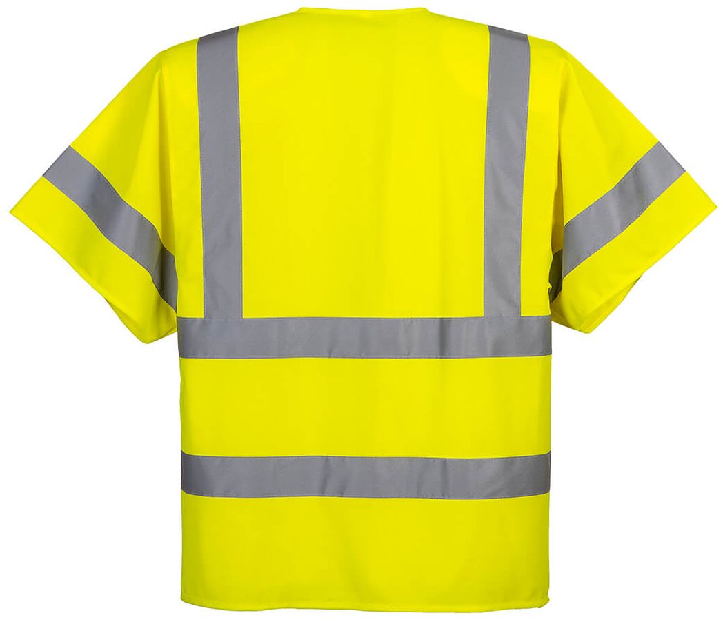 Halbarm-Reißverschluss-Weste für zusätzlichen Schutz bei hoher Sichtbarkeit, während der Träger kühl bleibt. Es wird leichtes Gewebe und Warnschutz-Tex-Reflexionsband verwendet. Mit Reißverschluss an der Vorderseite und einem Tablet-Fach mit Reißverschluss, in das Tablets bis zu einer Größe von 10,5" ohne Hülle passen.