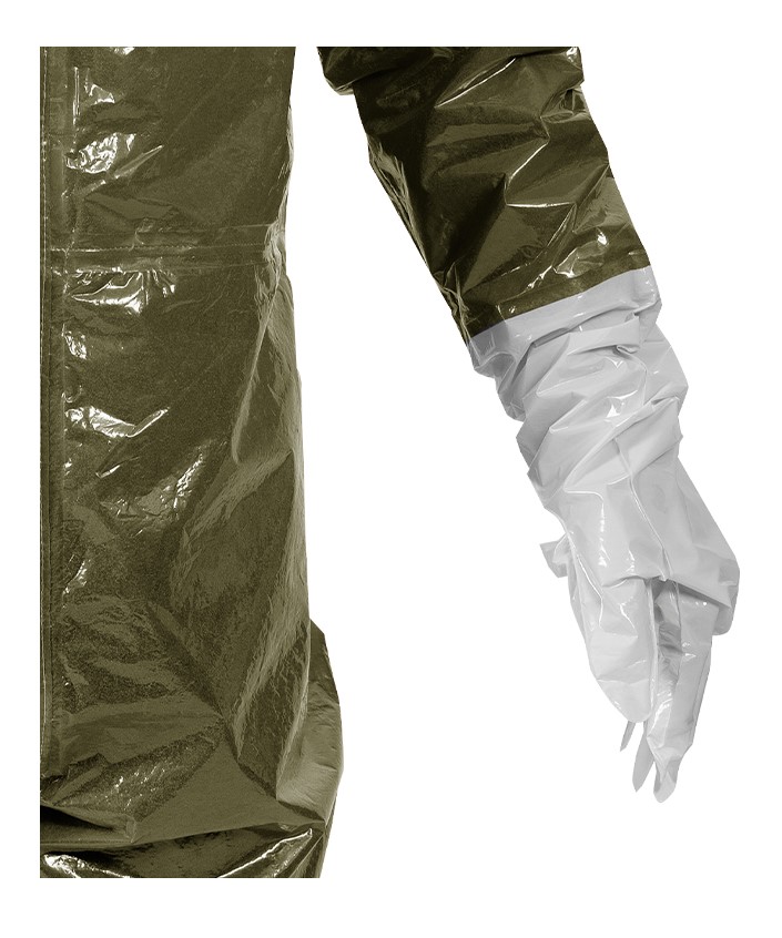 Fest angearbeitete ANSELL Barrier Laminathandschuh mit Schutzstulpe runden den Anzug ab und bieten eine anatomische Passform, sowie Schutz vor einem äußerst breiten Spektrum von Chemikalien und Flüssigkeiten.