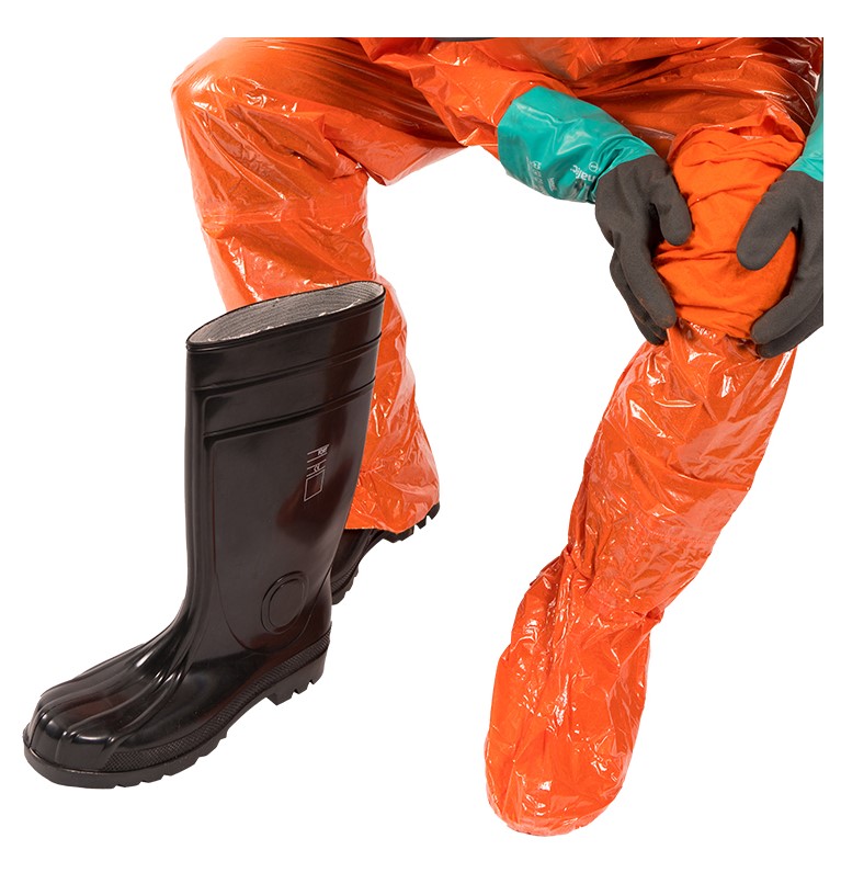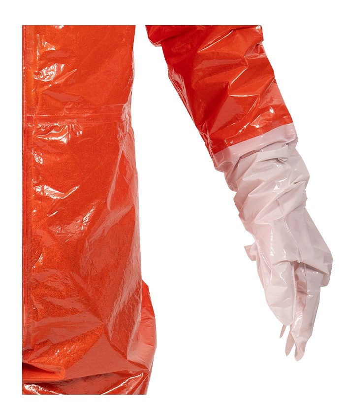 Fest angearbeitete ANSELL Barrier Laminathandschuh mit Schutzstulpe runden den Anzug ab und bieten eine anatomische Passform, sowie Schutz vor einem äußerst breiten Spektrum von Chemikalien und Flüssigkeiten.