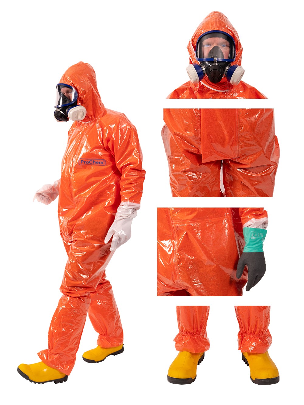 Der ProChem® I wird vornehmlich in der Industrie- und Tankreinigung, bei Inspektionsarbeiten und bei Einsätzen von Feuerwehren und Rettungskräften verwendet. Gummizüge an Ärmeln, Beinen und Kapuze sowie ein Taillengummi sorgen für eine optimale Passform und der großzügig geschnittene Schrittbereich für optimale Bewegungsfreiheit. Die ergonomische Kapuze und die erhöhte doppelte Abdeckblende mit Klettverschluss über dem Reißverschluss bis zum Kinn bieten zusätzlichen Schutz. Elastische Daumenschlaufen verhindern das Hochrutschen der Ärmel bei Überkopfarbeiten.